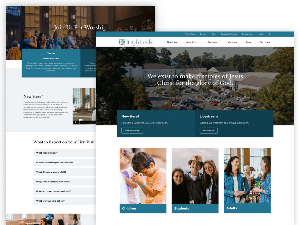 Growing churches are outwardly focused, prioritizing the needs of first- and second-time visitors or “seekers,” so that it’s easy for them to find the information they need and get connected. We help you navigate critical design and development decisions so that we create the optimal user experience for visitors.
