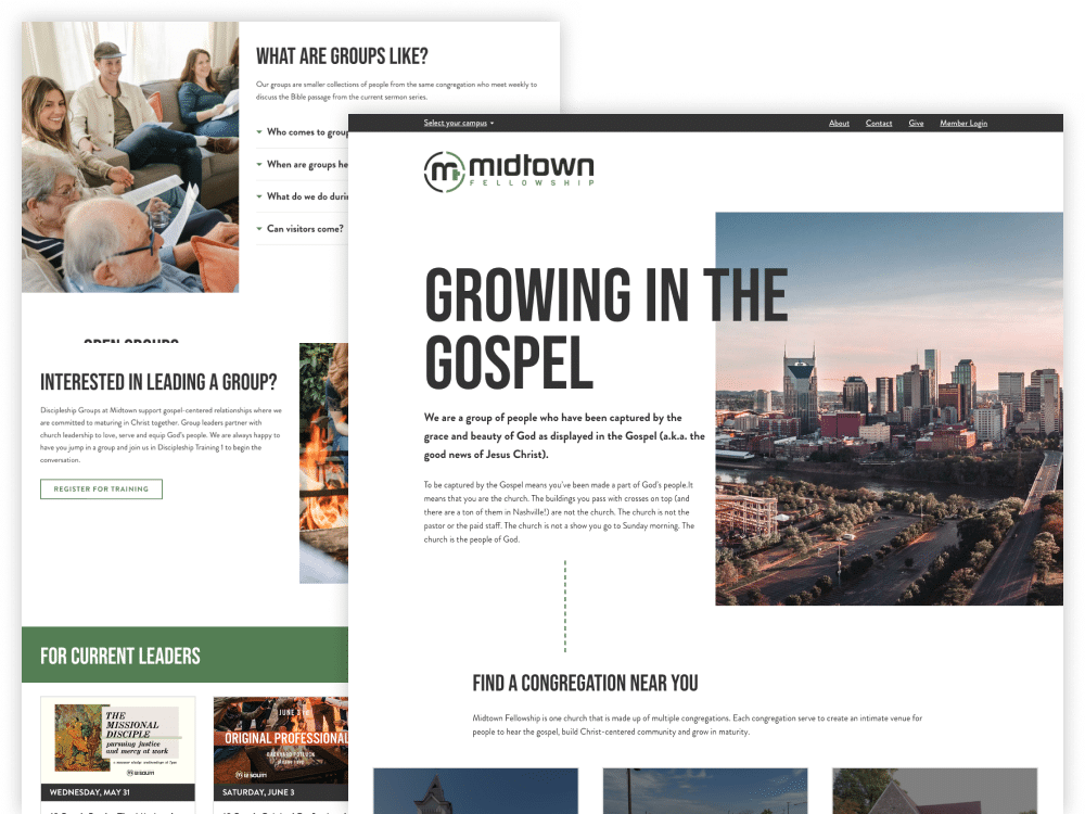 Your church website should help people take the next steps on their spiritual journey and get plugged in. We work with you to identify the key steps you want your audience to take on your engagement path, and orient your site around these markers.