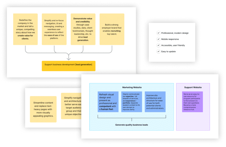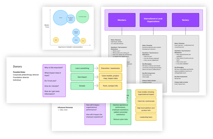 First things first. We meet with your website stakeholders to get a thorough understanding of your mission, vision, values, and brand persona, as well as your organizational, marketing and website project goals.
