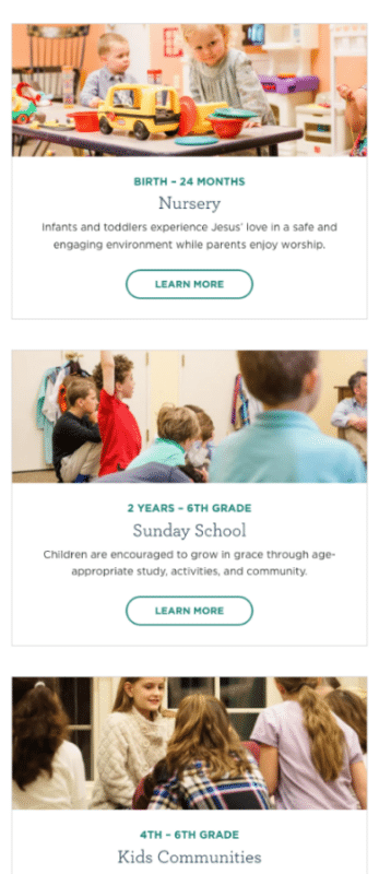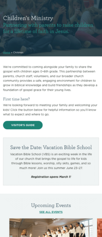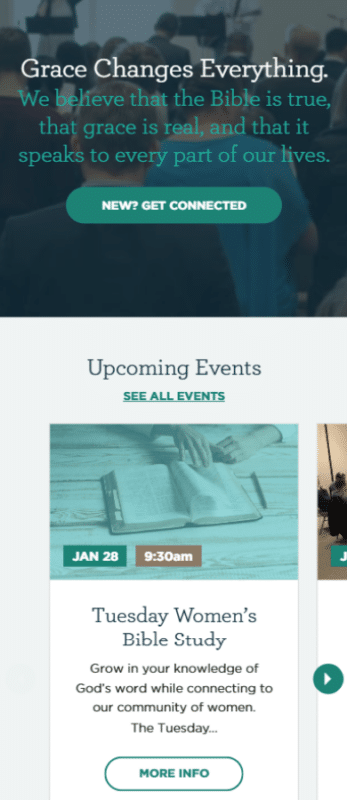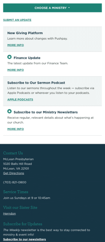 While the church only had one satellite campus at the time, they expect to keep growing quickly. The campus-specific area of the website can be replicated as new locations are added, so that the website scales seamlessly.