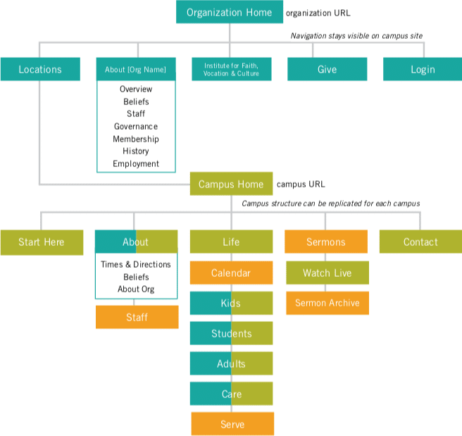 The first step was to think through a multi-site structure that makes sense based on how the messaging, programming, and communication overlaps at each campus.