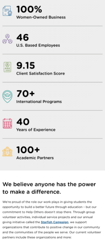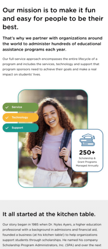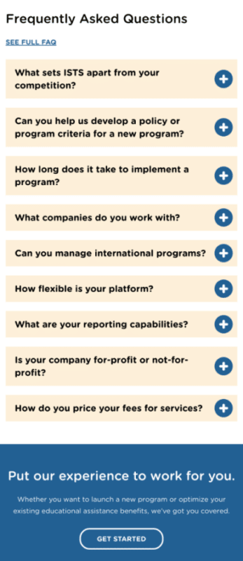 We redesigned the website for International Scholarship & Tuition Service (ISTS) website to reflect their energetic and optimistic brand personality. They love equipping companies to provide scholarships and grants, and we built a website that would let that shine through in the photo treatments, illustrations, color palette and fonts. We reworked the site map and wrote and optimized the website content for improved search engine performance and a simplified user experience. The site is easy for admin to add and update content as they grow.
