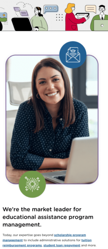 The primary marketing website showcase the company’s comprehensive educational assistance program management services, with details on the services provided, how the process works, and related resources.