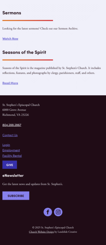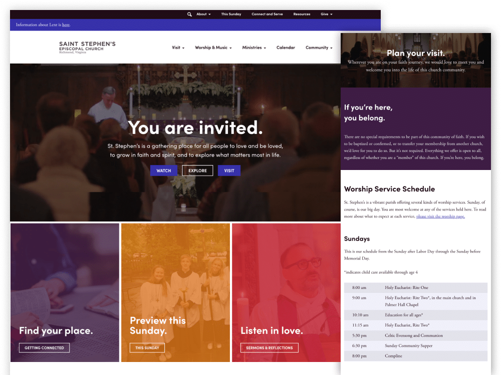 We partnered with St. Stephen’s Episcopal Church in Richmond, VA to create a website that reflects the warmth, vibrancy, and deep sense of community at the heart of their congregation.
