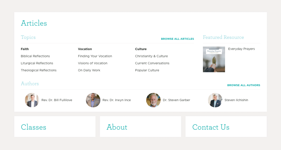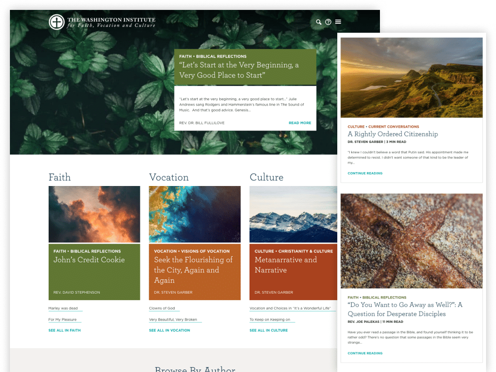 The Washington Institute for Faith, Vocation & Culture shares insightful content from thought leaders on the topics that shape our world. We helped them design and develop a content-driven website that organizes a large volume of long-form articles and educational material while providing a tranquil experience for visitors.